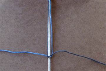 К узлу зафиксируйте рабочие нитки и, закрепив заготовку браслета в импровизированном “станке”, которым станет плотный картон с канцелярскими зажимами с противоположных сторон, приступите к плетению.