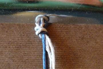 Сложив вдвое шнур основы, завяжите посередине его петлю для застежки. Пошагово завязывание узла изображено на фото: